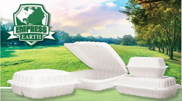 At Empress Products, we care about the environment, and our impact upon it. The MINERAL FILLED POLYPROPYLENE HINGED LID CONTAINERS are made with up to 40% natural mineral content blended with polypropylene.